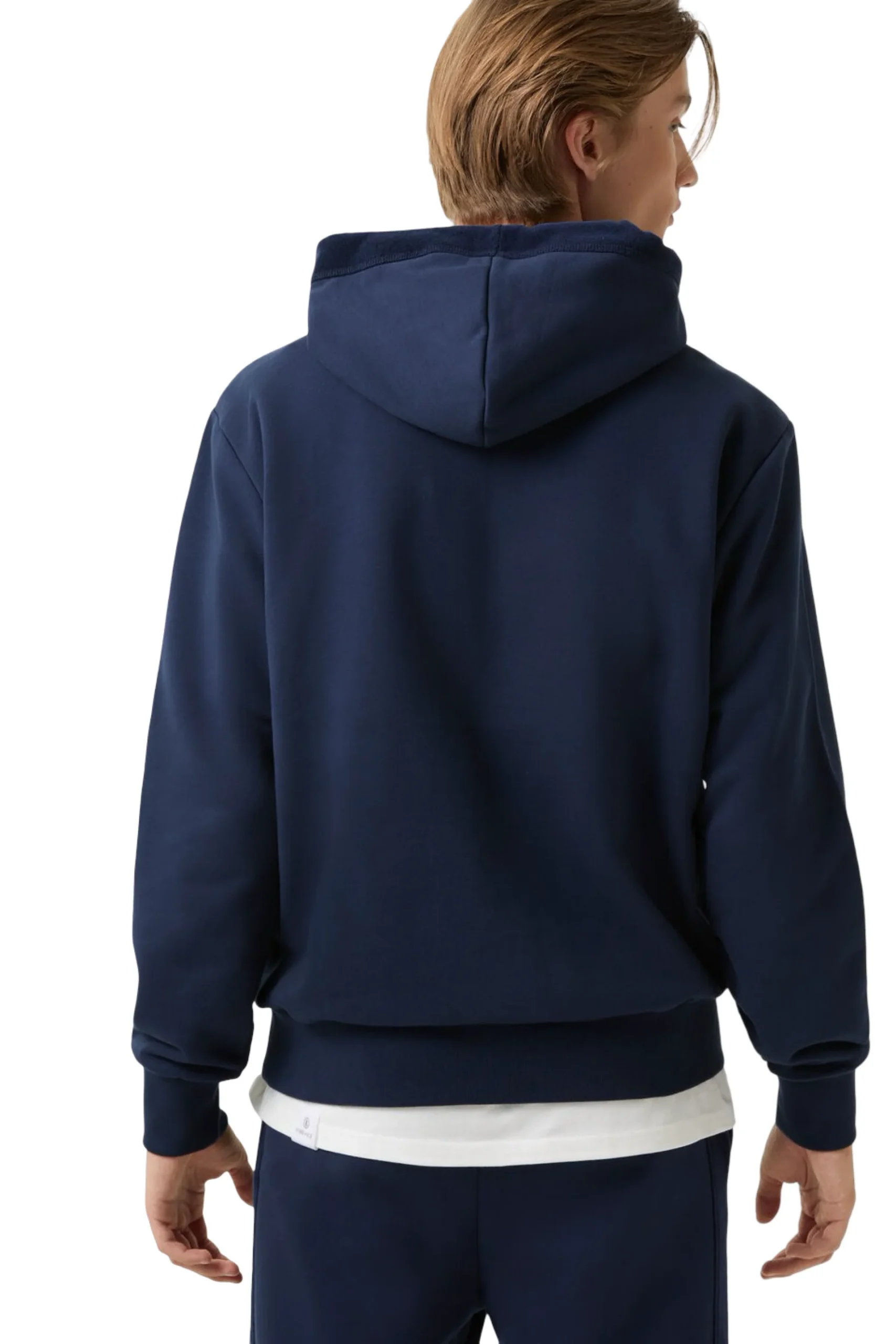 Le sweat à capuche Kristan, avec sa capuche haute et son cordon de serrage accentué, est un modèle polyvalent et décontracté, à porter avec le pantalon molletonné Pedro. Les parties en tissu de velours et l’imprimé design sur le devant en font une pièce clé. En pur coton.