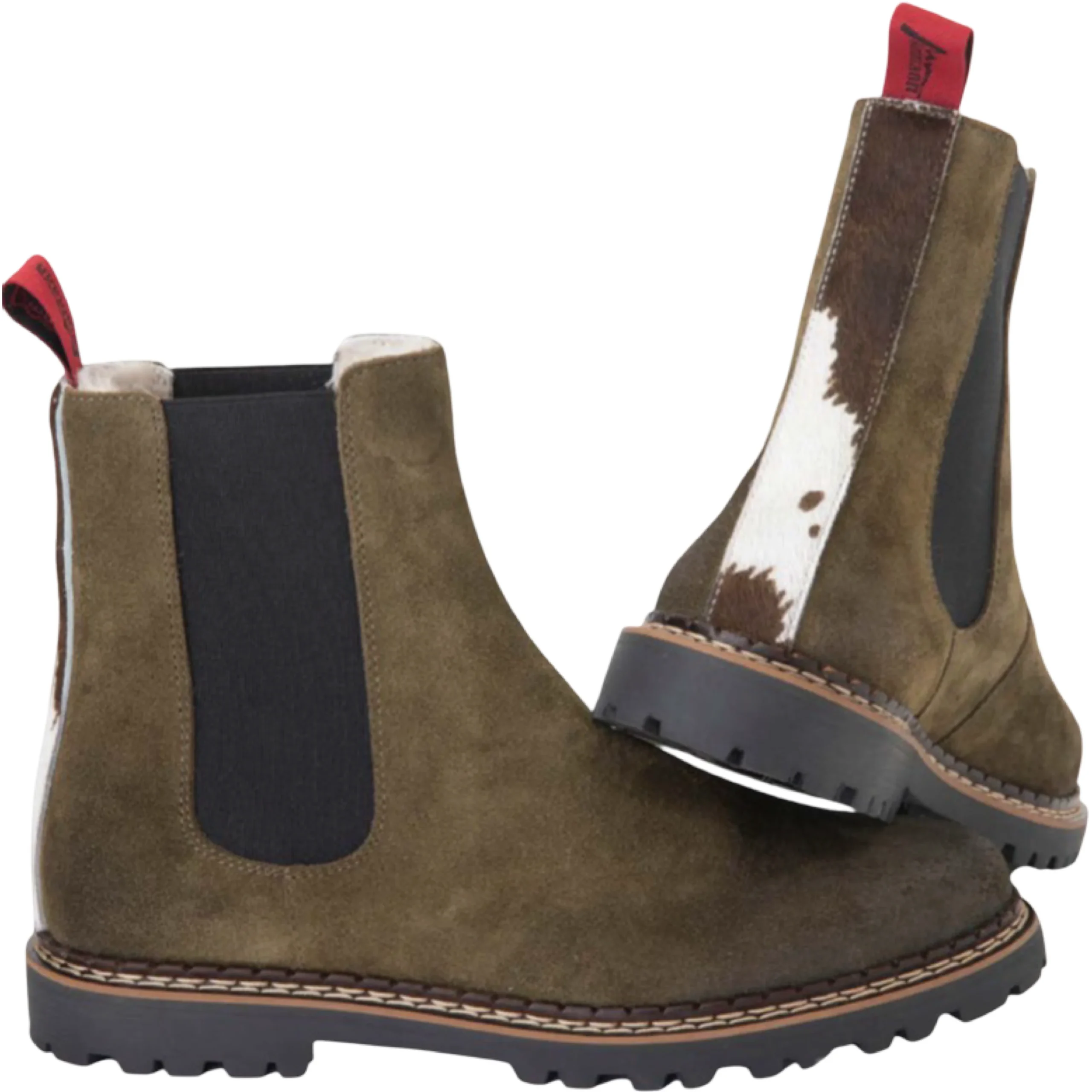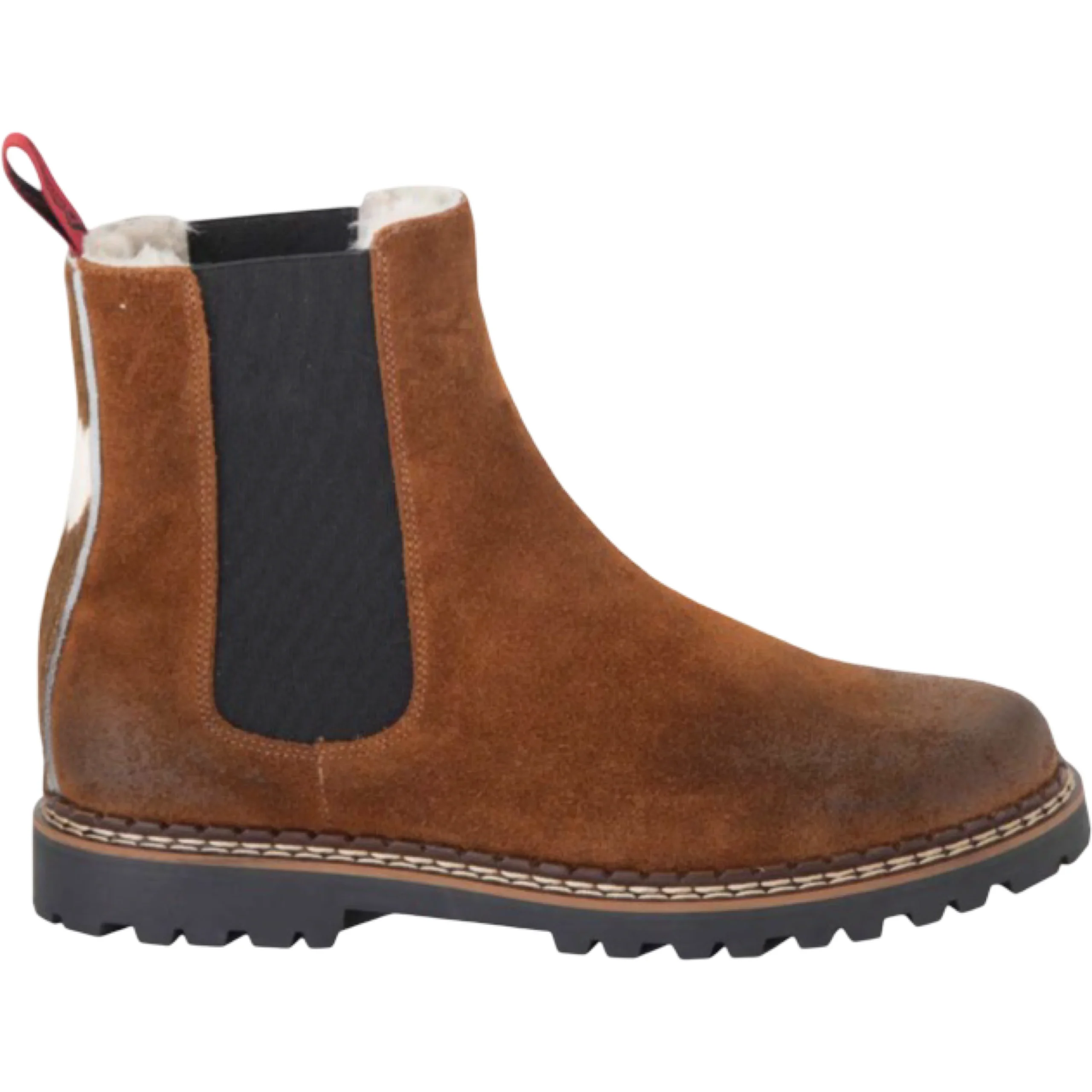 C’est une botte à enfiler facile à entrer fabriquée à partir de différentes couleurs de daim, doublée de fourrure d’agneau et construite sur Ammann’s