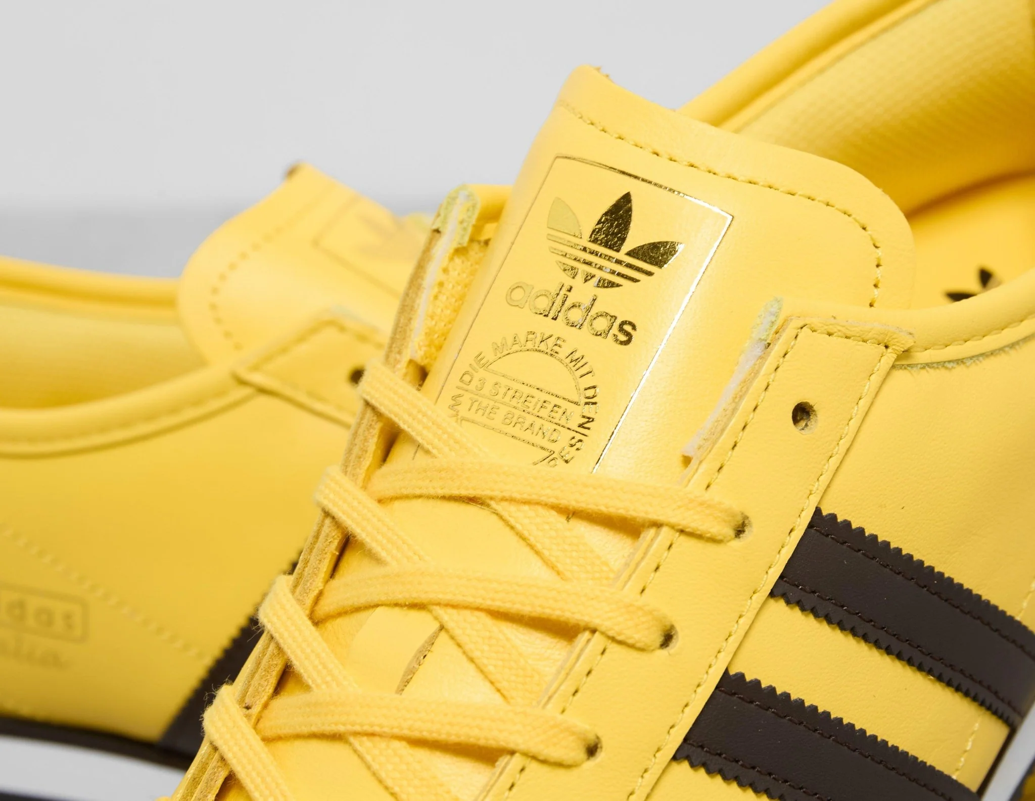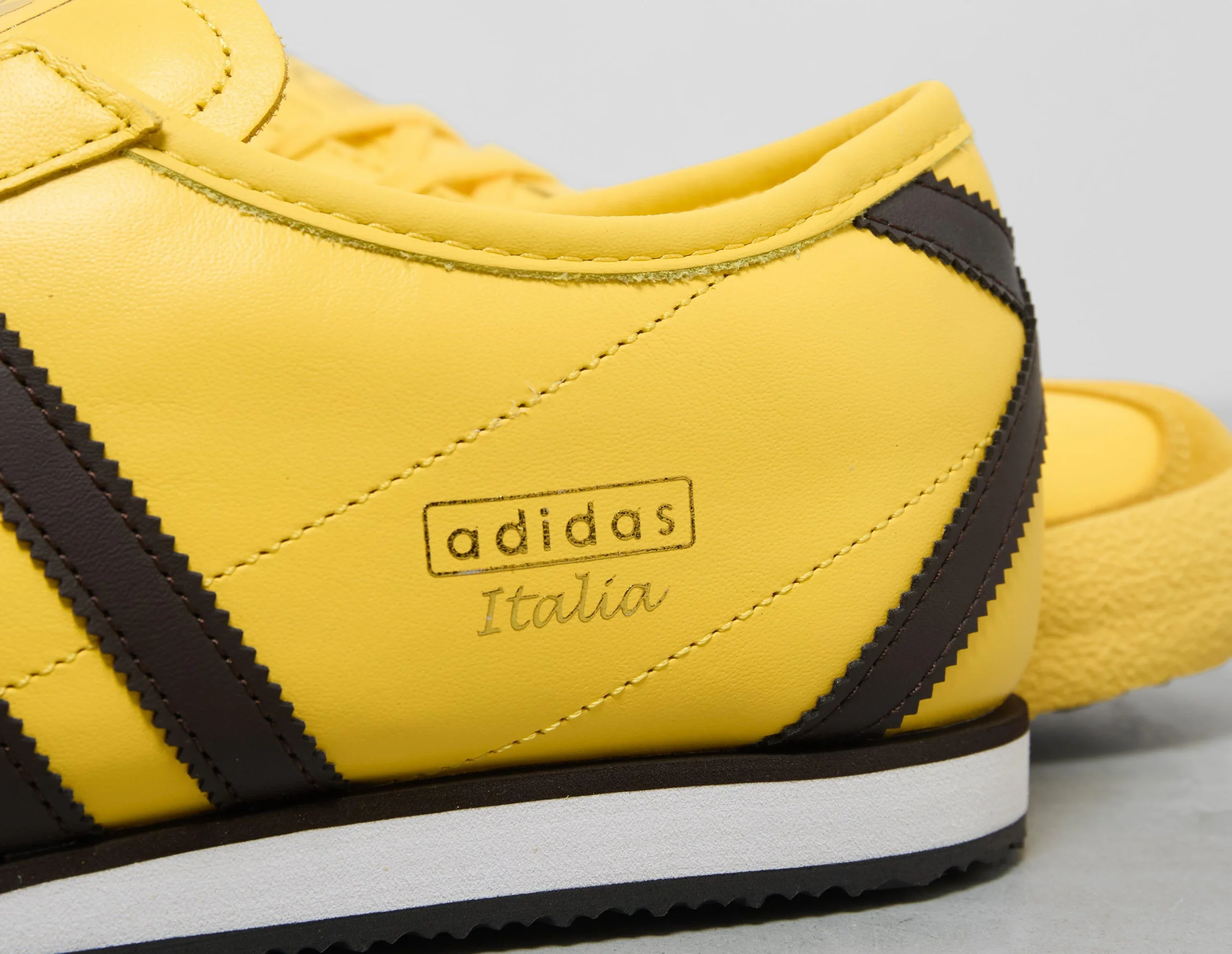 Based on the iconic silhouette of the ’60s and ’70s, adidas delivers a contemporary twist on its classic Italia. The new low-profile Italia 70s arrives in premium tumbled yellow leather with black detailing on the 3-Stripes and heel. A dual-toned EVA midsole supports from underfoot, while gold foil ‘Italia’ branding completes the look. | JQ9071