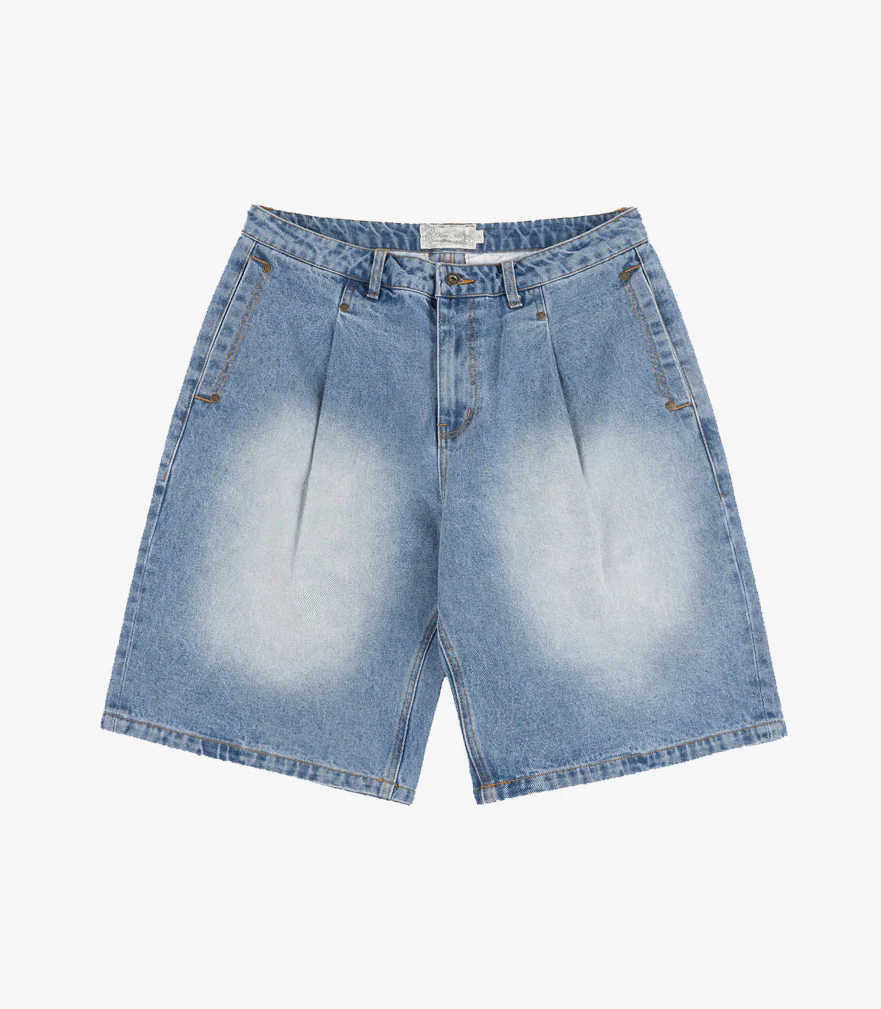PLEATED DENIM SHORT BLUE WASHED