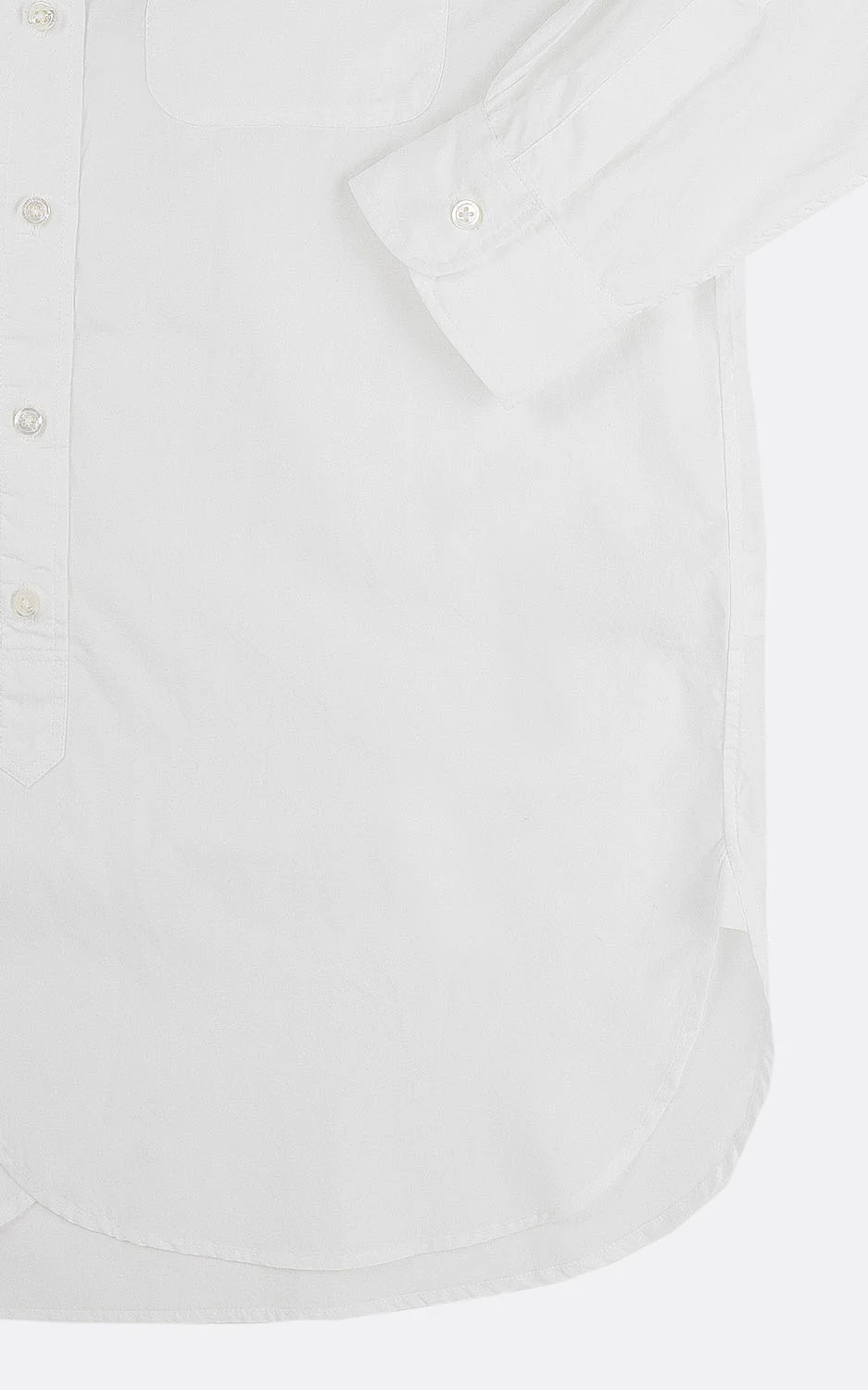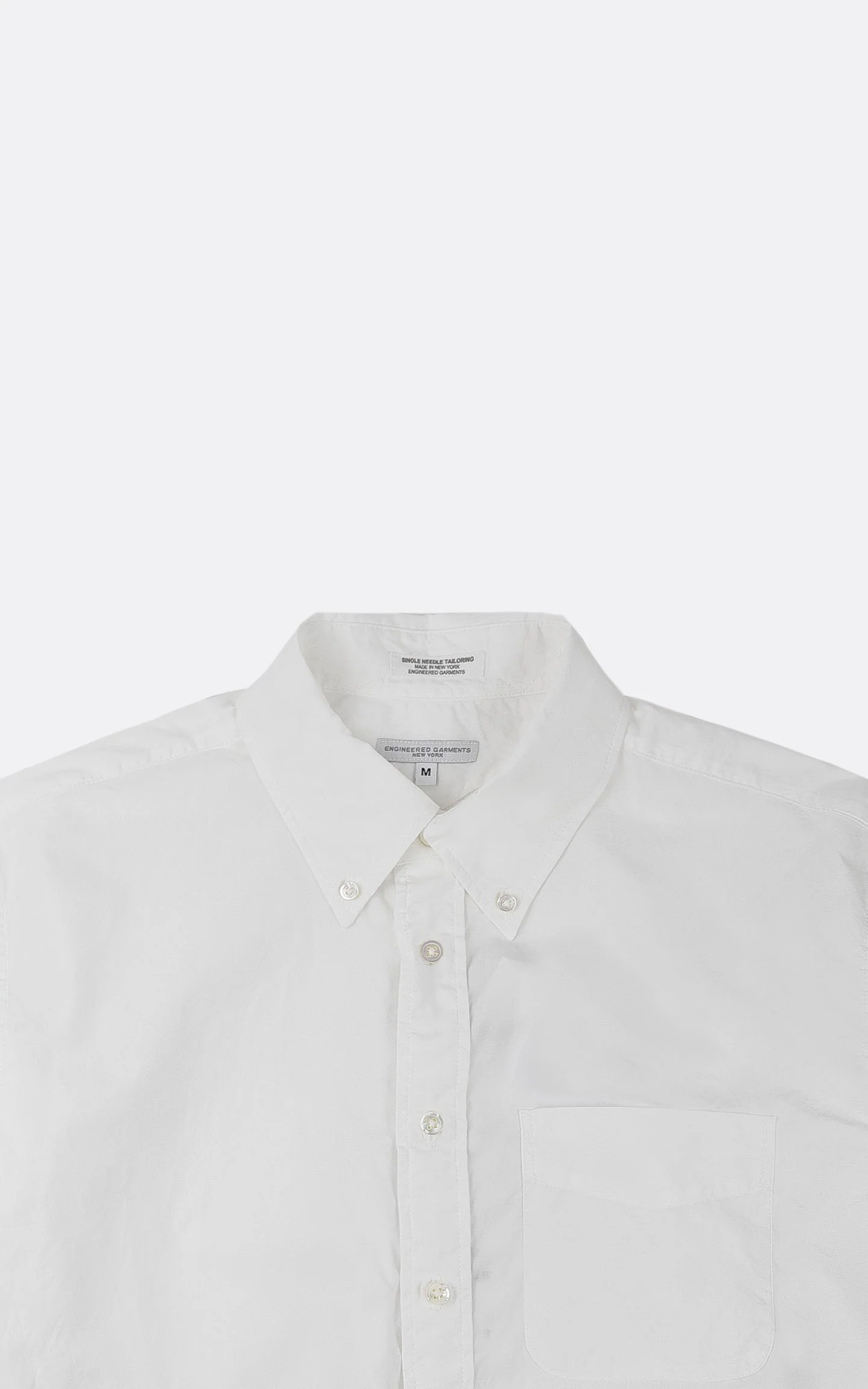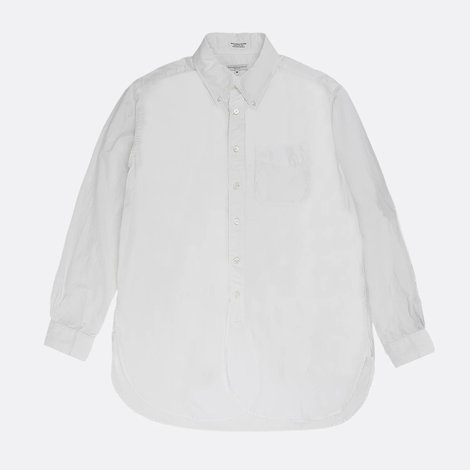 – 19 Century BD Shirt par Engineered Garments – Poche arrondie poitrine gauche – Col et poignets boutonnés – Ourlet incurvé – Fabriquée aux USA – Couleur « White » 23S1A001-ET002