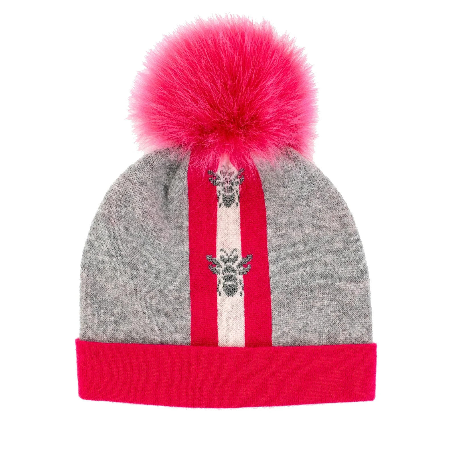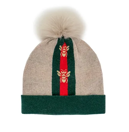 TUQUE TRICOT AVEC IMPRIMÉ D’ABEILLES LIGNÉES COMPOSITION: 100% LAINE GARNITURE DE RENARD